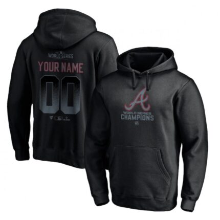 Men’s Atlanta Braves Black 2021 World Series Champions Custom Name & Number Pullover Hoodie