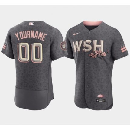 Men’s Washington Nationals Customized 2022 Grey City Connect Cherry Blossom Stitched Baseball Jersey