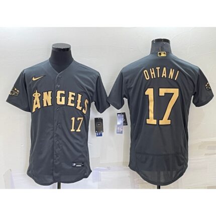 Men’s Los Angeles Angels #17 Shohei Ohtani 2022 All-star Charcoal Flex Base Stitched Jersey