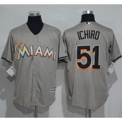 marlins #51 ichiro Suzuki Grey New Cool Base Stitched MLB Jersey