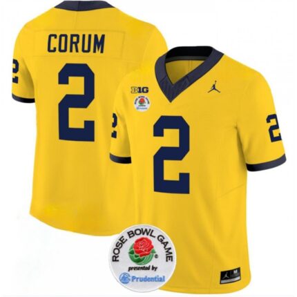 Men’s Michigan Wolverines #2 Blake Corum 2023 F.U.S.E. Yellow Rose Bowl Patch Stitched Jersey