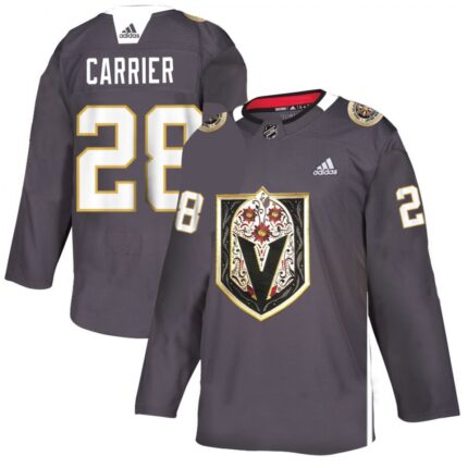 Men’s Vegas Golden Knights #28 William Carrier Grey Latino Heritage Night Stitched NHL Jersey