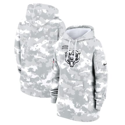 Women’s Chicago Bears Nike Arctic Camo 2024 Salute To Service Club Fleece Pullover Hoodie