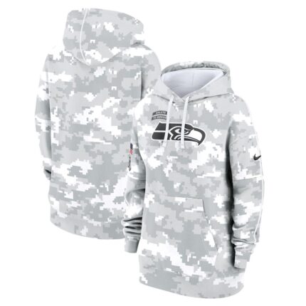 Women’s Seattle Seahawks Nike Arctic Camo 2024 Salute To Service Club Fleece Pullover Hoodie