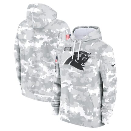 Youth Carolina Panthers Nike White/Gray 2024 Salute To Service Pullover Hoodie