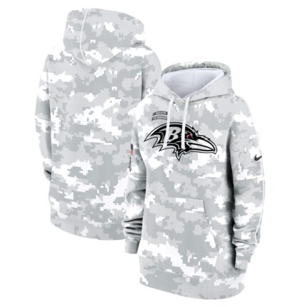 Women’s Baltimore Ravens Nike Arctic Camo 2024 Salute To Service Club Fleece Pullover Hoodie