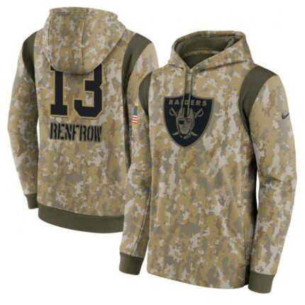 Men’s Las Vegas Raiders #13 Hunter Renfrow Camo 2021 Salute To Service Therma Performance Pullover Hoodie
